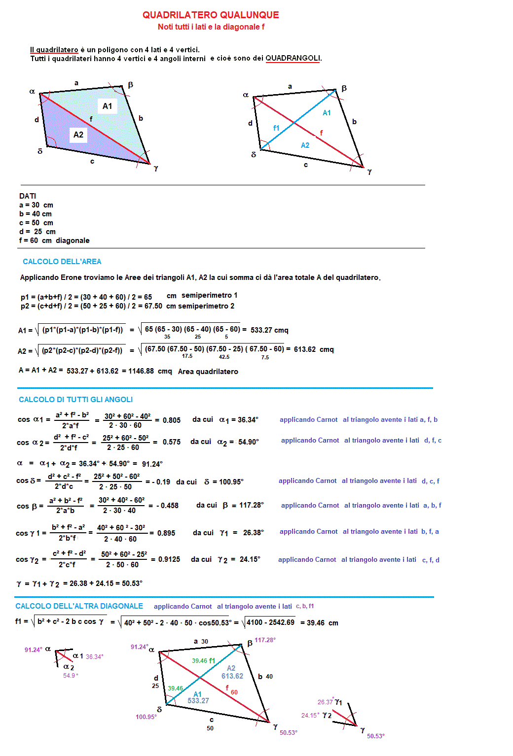 Calcolo area del Quadrangolo o Quadrilatero qualunque- calcolo con 2 triangoli