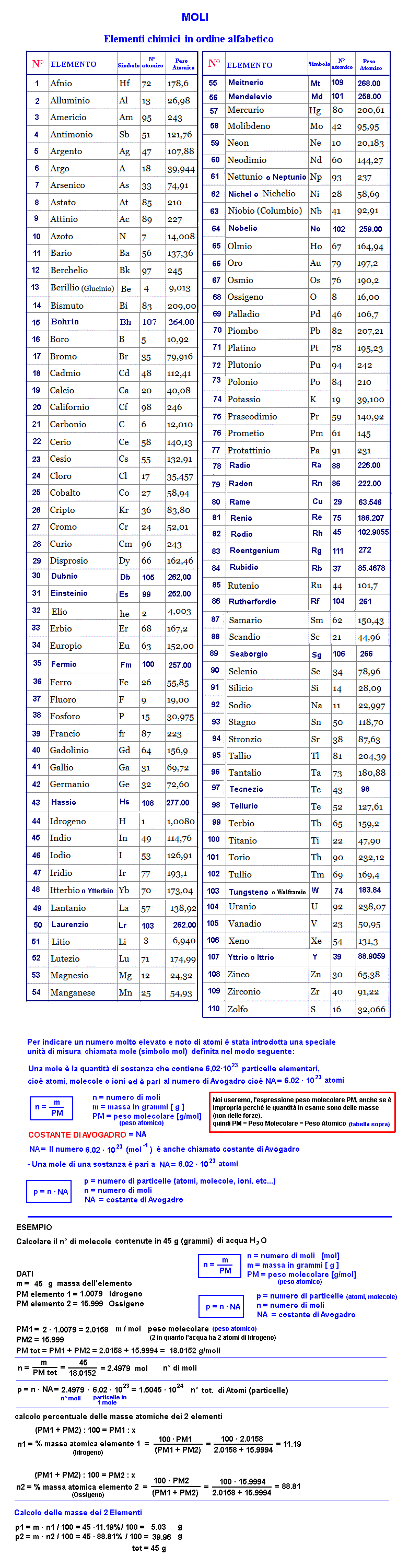 CHIMICA - calcolo dei moli, mole, mol di 2 Elementi (composto chimico di 2 elementi)