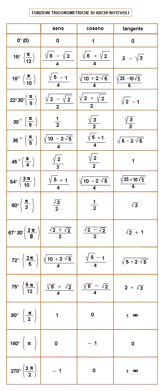 FORMULE - TRIGONOMETRIA- archi notevoli -
