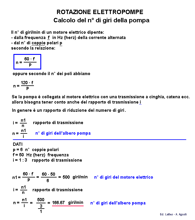 Rotazione elettropompe, calcolo numero di giri