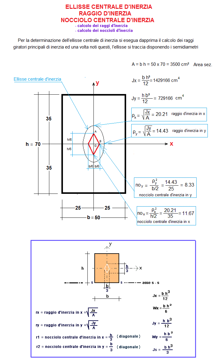 formule per il calcolo del RAGGIO D'INERZIA E DEL NOCCIOLO CENTRALE D'INERZIA