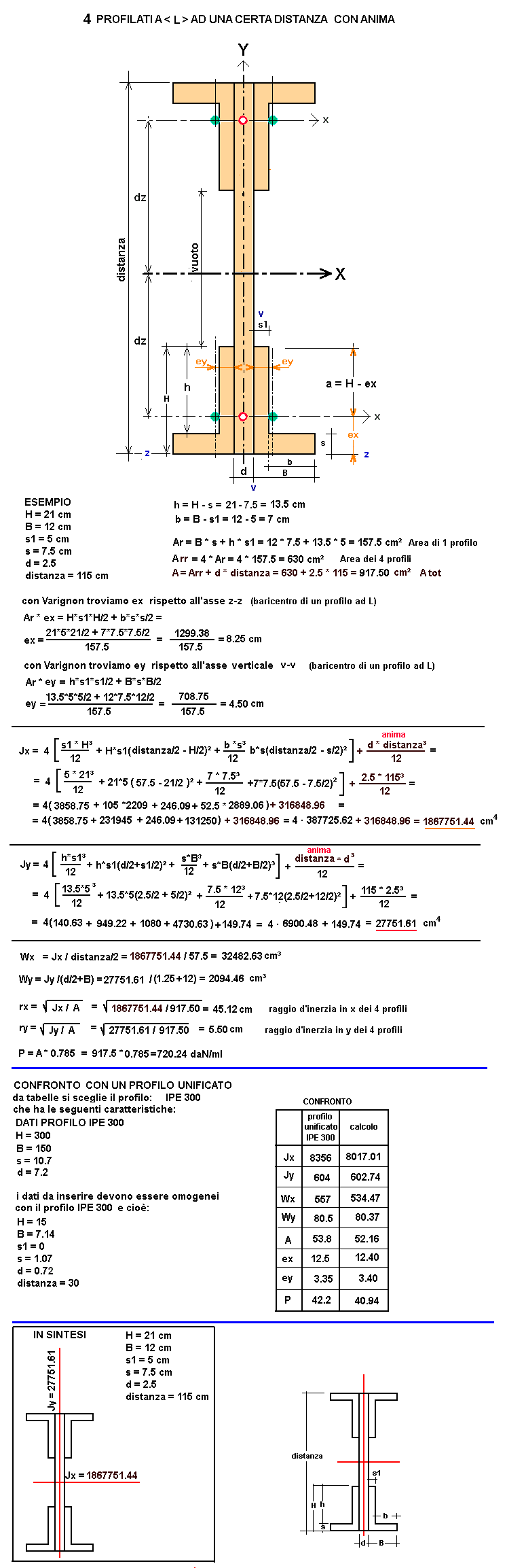 Calcolo momento d'inerzia di 4 PROFILATI ad L accoppiati con anima