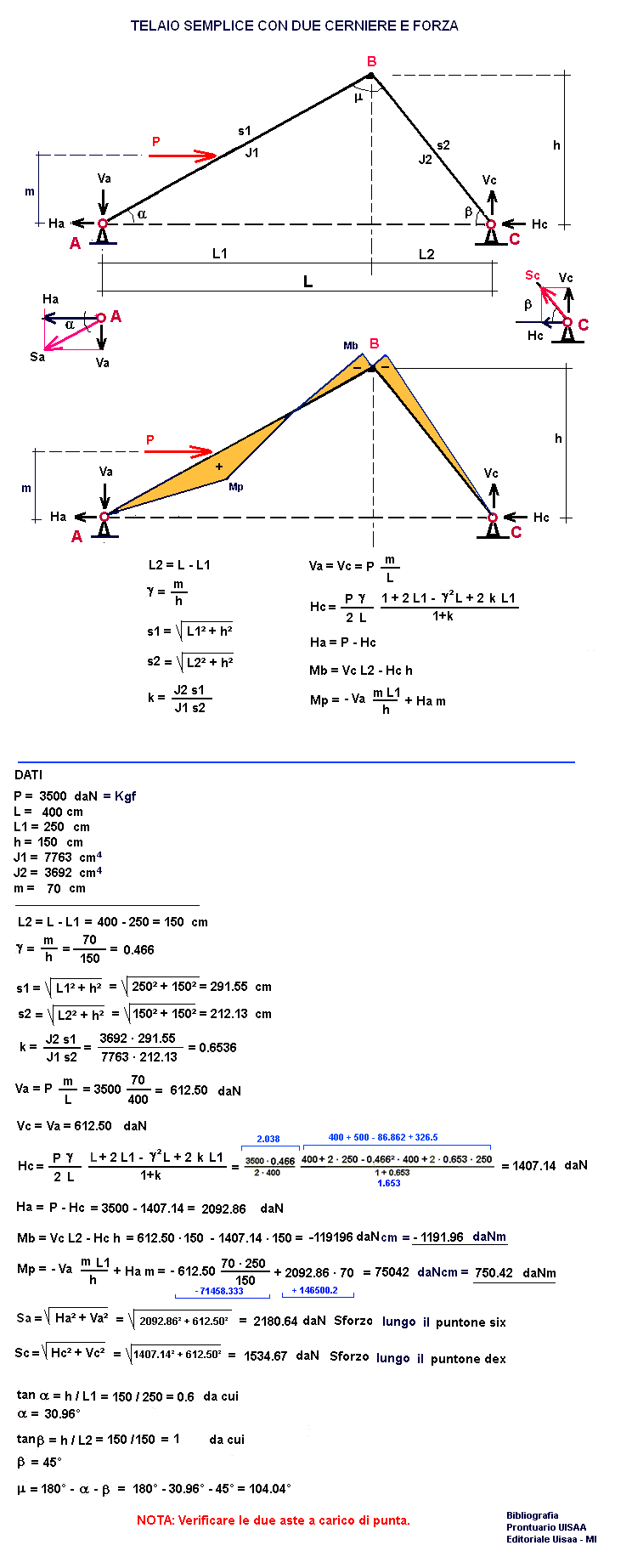 Telaio semplice triangolare con due incerniere e forza orizzontale