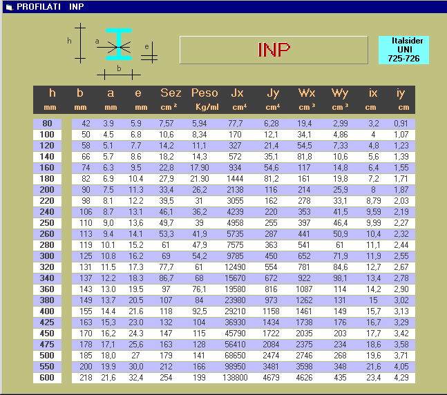 Tabelle dei Profilati