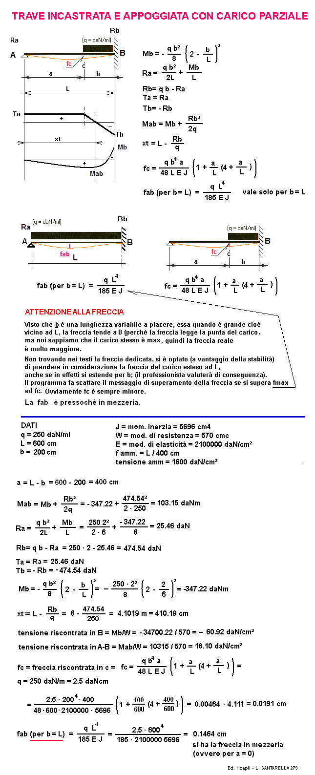 TRAVE A APPOGGIATA ED INCASTRATA CON CARICO UNIFORME E PARZIALE Calcoli statici * * *