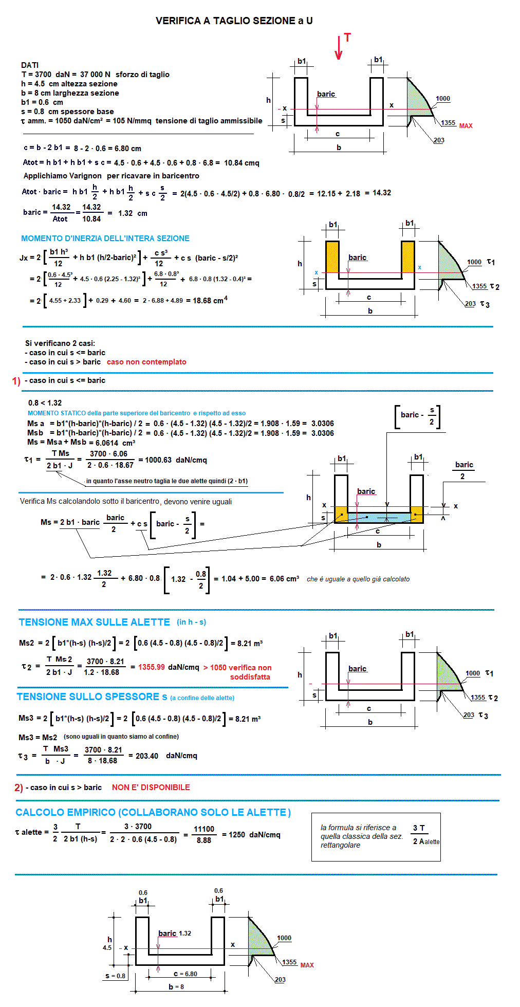 τ empirica (alette) = Tensione di taglio solo le 2 alette verticali = 3*T / (2*2*b1*(h-s))