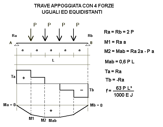 TRAVE APPOGGIATA CON QUATTRO FORZE EQUIDISTANTI